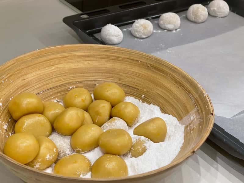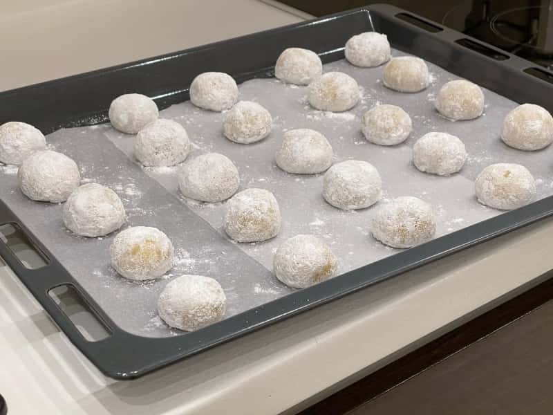 Сформувати кульки (20-24 штучок), рясно обваляти в цукровій пудрі.