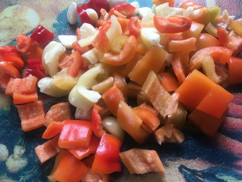 - 6-7 великих стручків ( 0,8 кг ) солодкого перцю