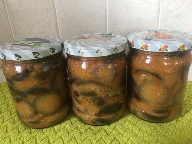 Заготовку помішую, стежу, щоб не пригоріло. Соус в процесі приготування вбирається в баклажани, густіє і упарюється. Його стає менше.
