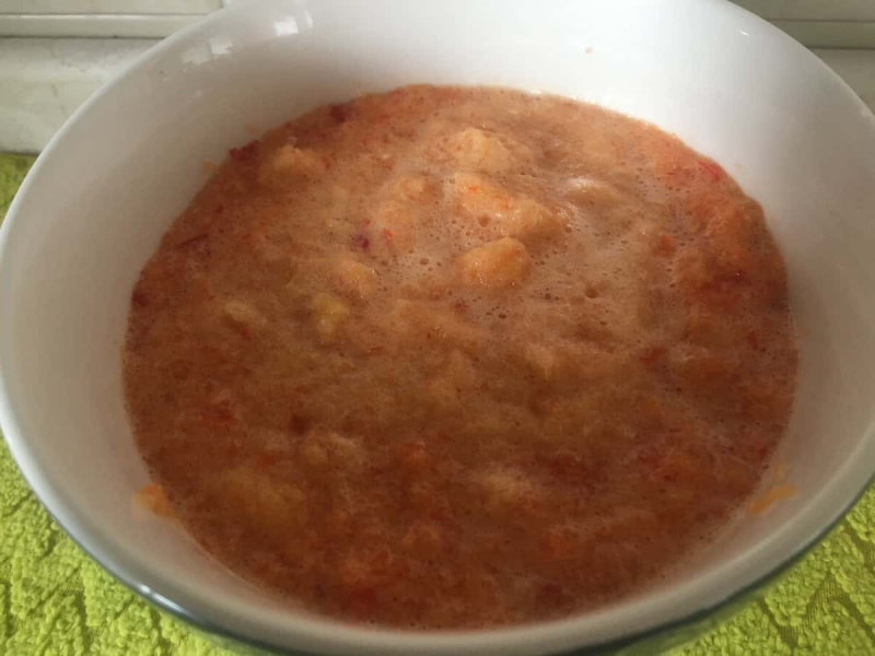 У мене в цьому сезоні перець блідий, швидше за жовтий, ніж червоний. Тому заготівля в кольорі програє тієї, яка приготовлена з темним, майже бордовим перцем. На смаку це не позначається.