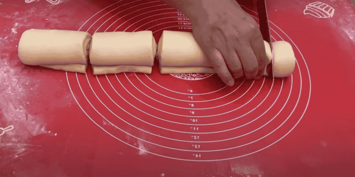 Потім шар змастити маслом зробити надрізи розділити на 6 частин скласти так як на фото.