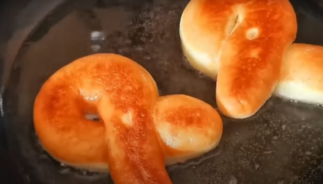 У сковороді на олії обсмажуємо крендельки з обох боків до рум’яної скоринки.