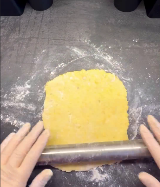 🔻Тісто ділимо на 6 – 8 частин, розкачуємо в коржики.