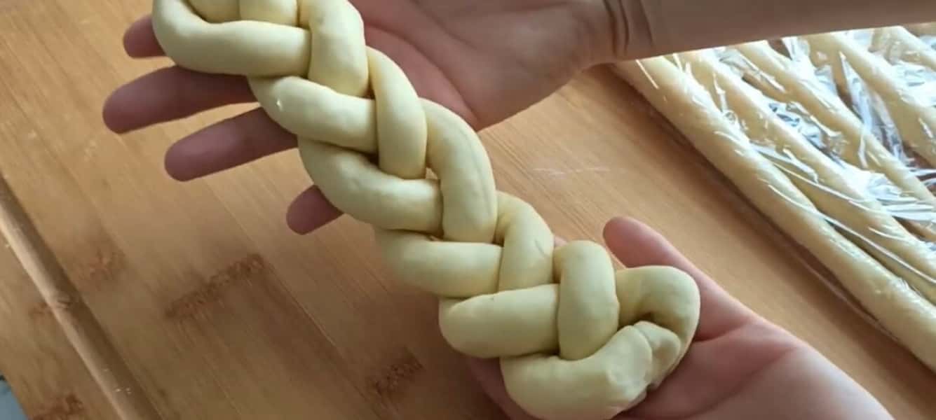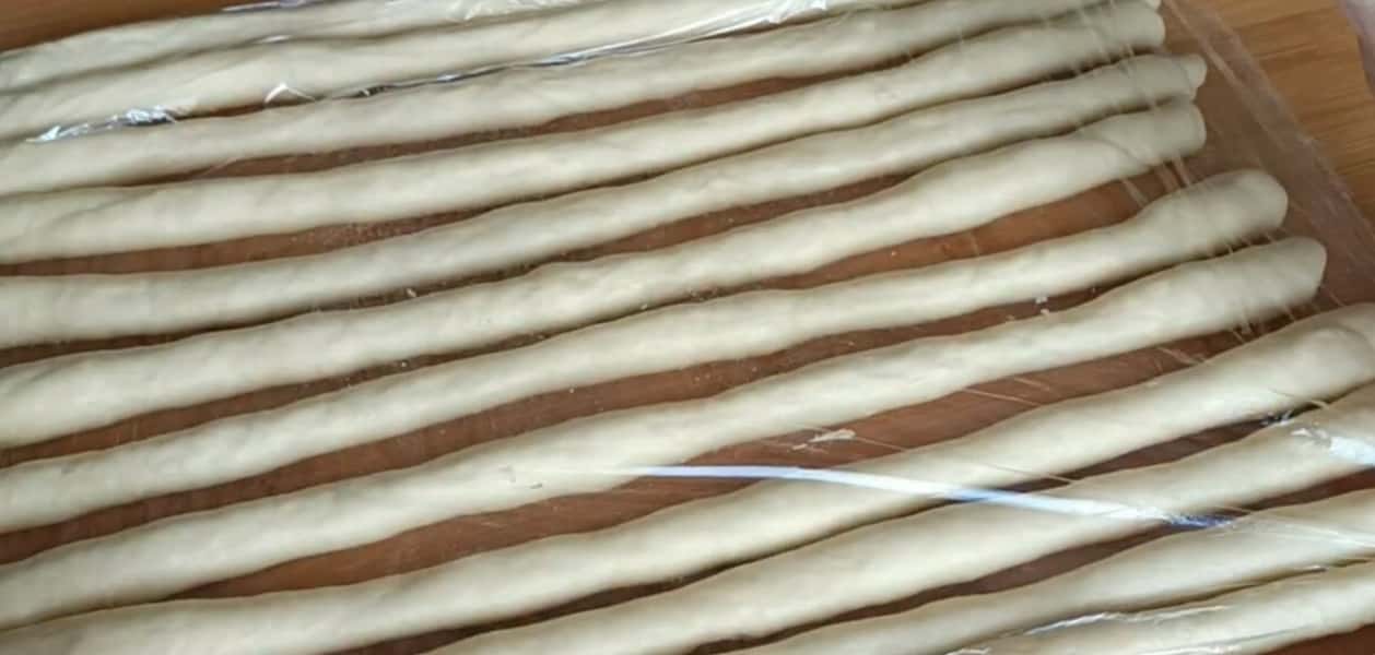 З кульок розкачуємо коржі і загортаємо в трубочки. Ми залишаємо під плівкою.