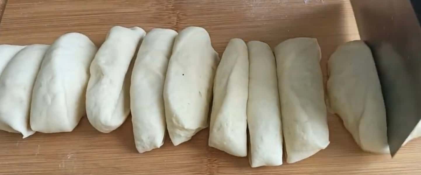 Скачуємо в ковбаску, ділимо тісто на 12 шматочків і робимо кульки.