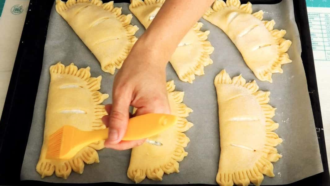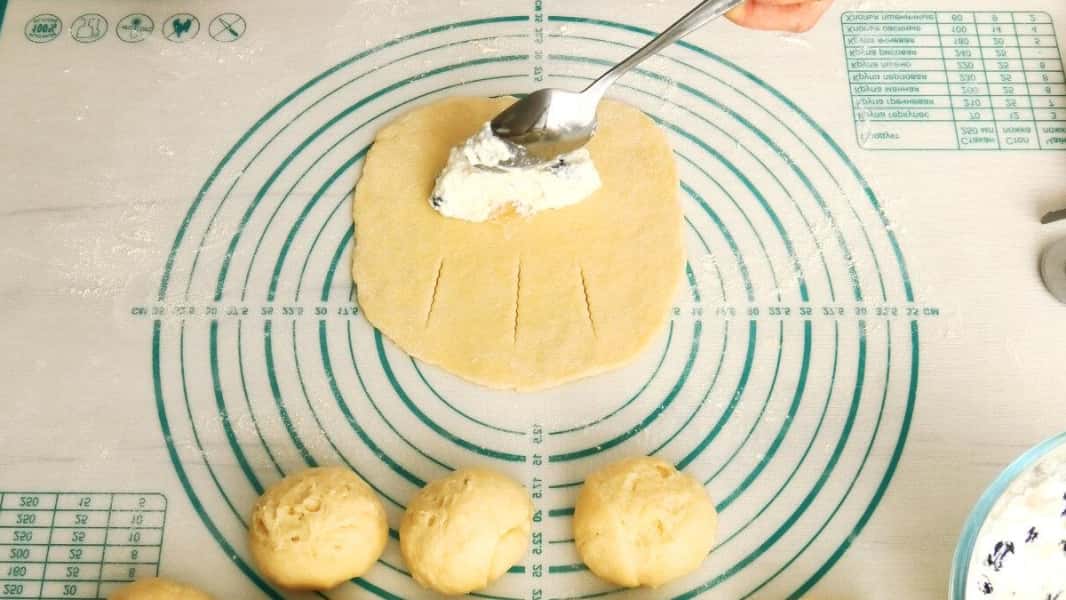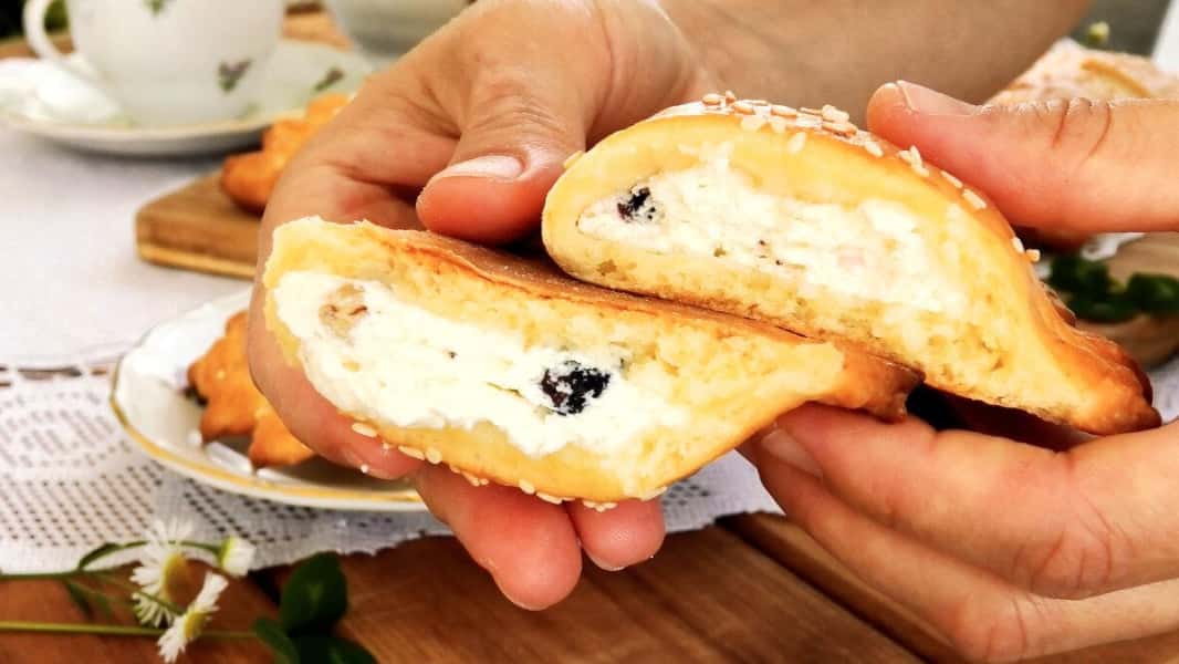 У них найпростіше тісто, але воно ніжне, м’яке і залишається таким же навіть на наступний день. А класична сирна начинка відмінно підходить до цього тіста. У сир я додала родзинки, але можна замість нього покласти нарізану курагу, ягоди або фрукти.
