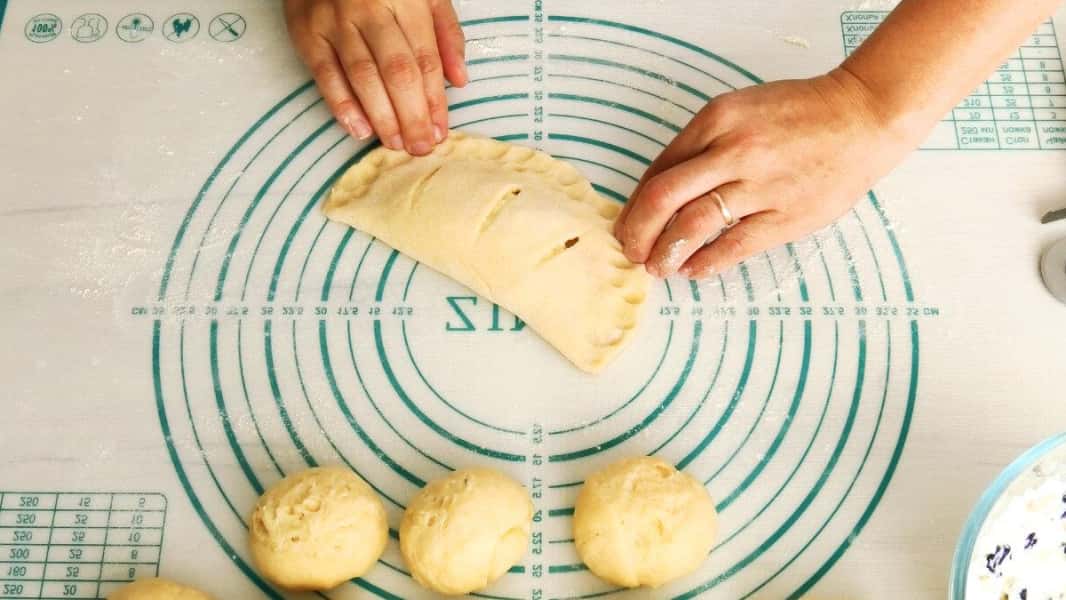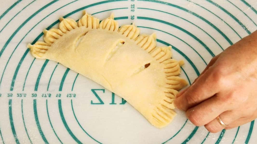 Накрити половинкою тіста і пройтися по краю пальцями.