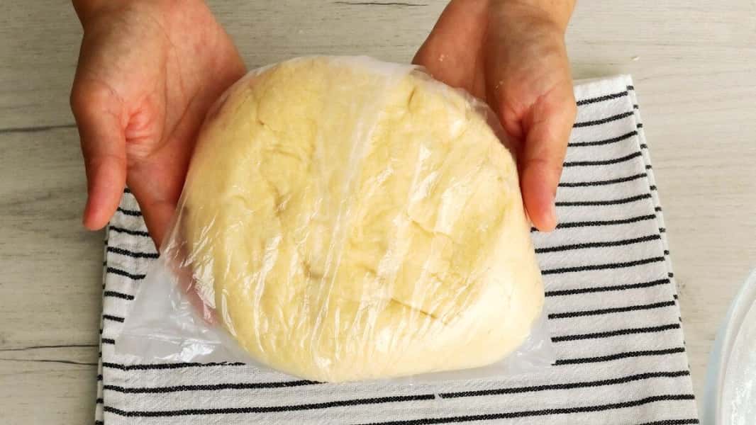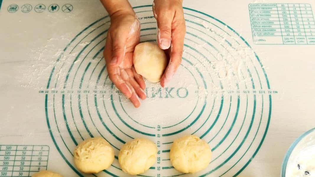 Охолоджене тісто скачати в ковбаску і розділити на рівні частини. Кожен шматочок скачати в кульку. У мене вийшло 9 штук.