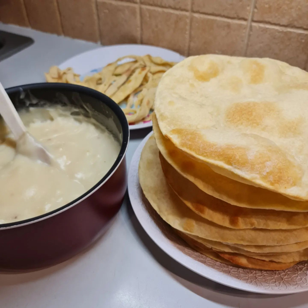 А) Нагріти в мікрохвильовій печі 600 мл молока до теплого стану (щоб цукор швидше розчинився) + 2 склянки цукру + 6 стол ложки борошна. Збити до однорідності міксером.