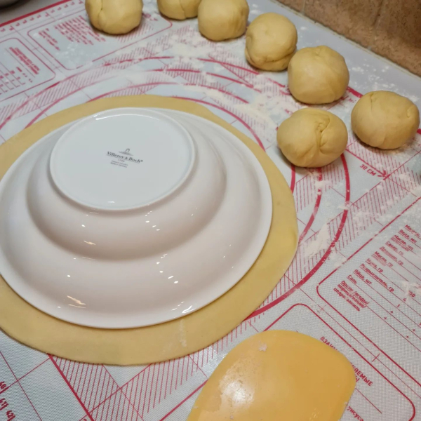 - Розкачуємо кола, обрізаємо по тарілці.