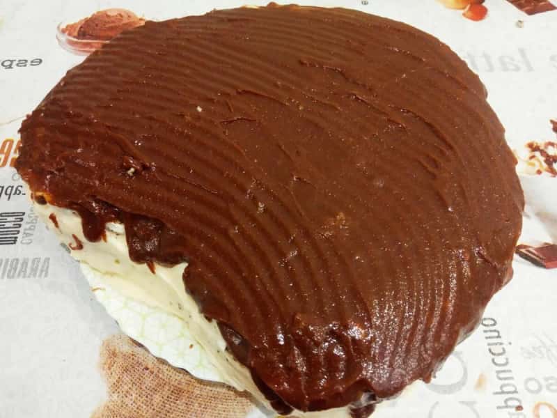 21. Верх торта покриваємо шоколадною глазур’ю.