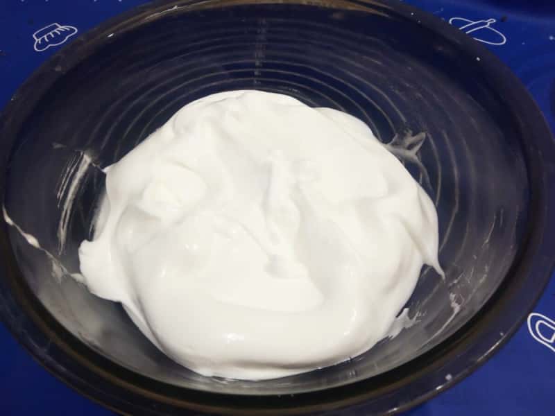 9. Додаємо в білки частинами цукор і збиваємо до стійкої маси.