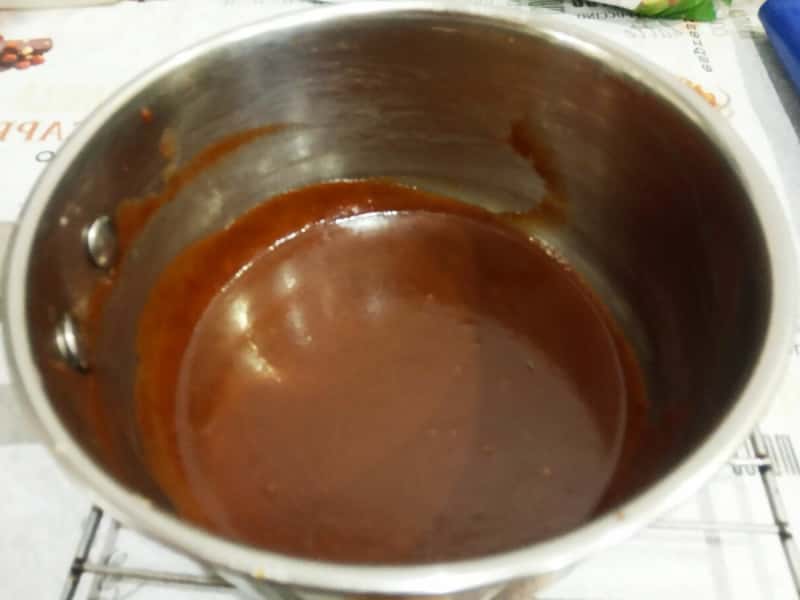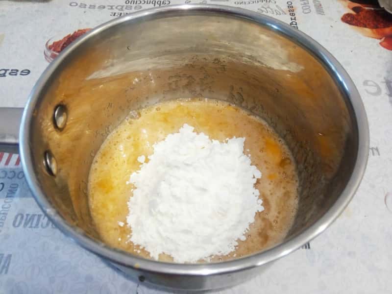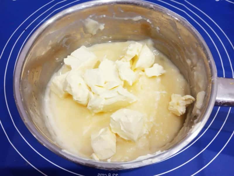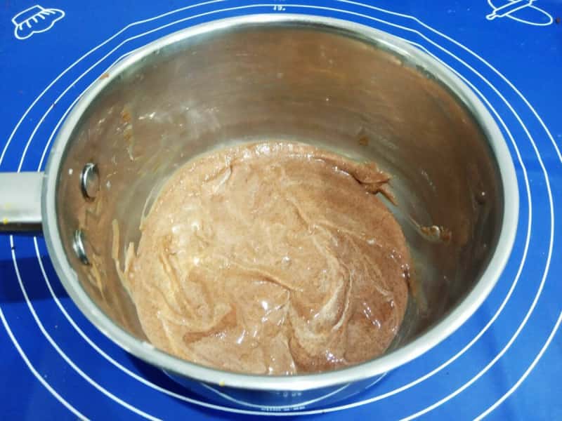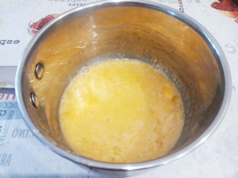 24. Кладемо в глазур вершкове масло, розмішуємо і знімаємо з вогню, охолоджуємо.