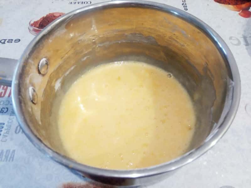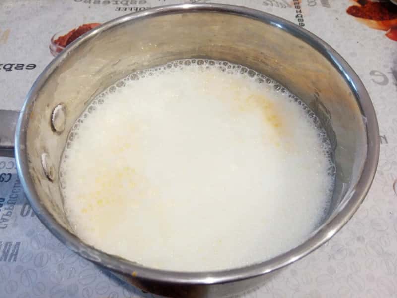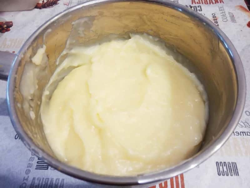 5. Ставимо крем на вогонь, постійно при нагріванні мішаємо і доводимо до кипіння. На повільному вогні, також мішаємо, щоб уникнути пригоряння крему, заварний крем доводимо до загусіння.