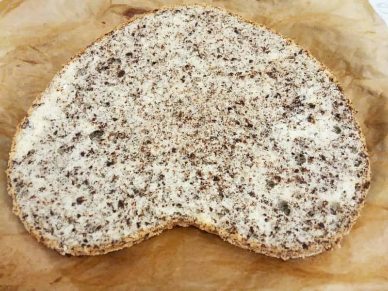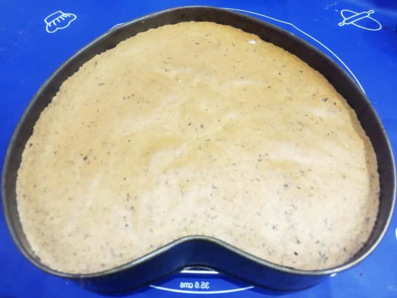 14. Форму для торта застеляємо пергаментом, викладаємо тісто і розрівнюємо.