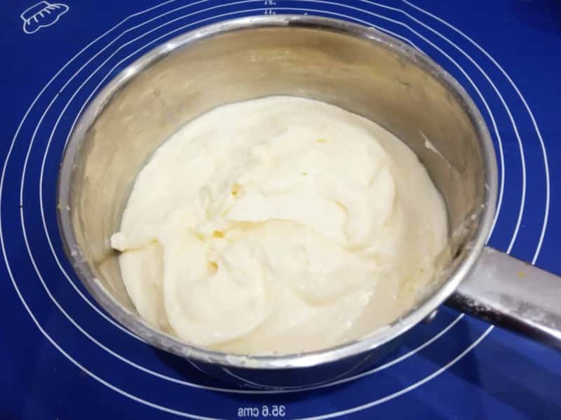18. У заварний крем додаємо розм’якшене вершкове масло і збиваємо.