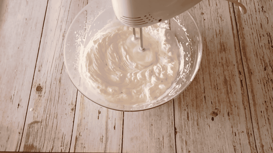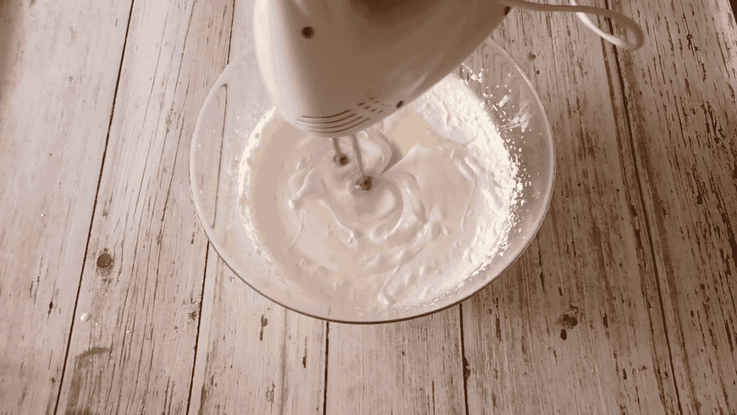 Остаточно збиваю міксером до отримання стабільного вершкового крему, який стійко тримається на лопатях міксера.