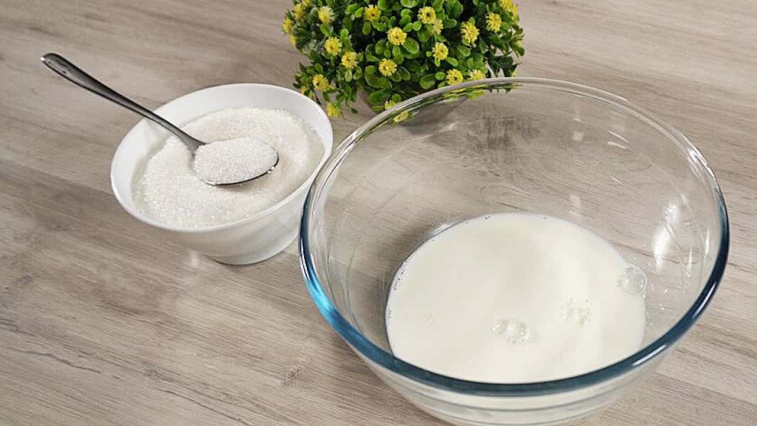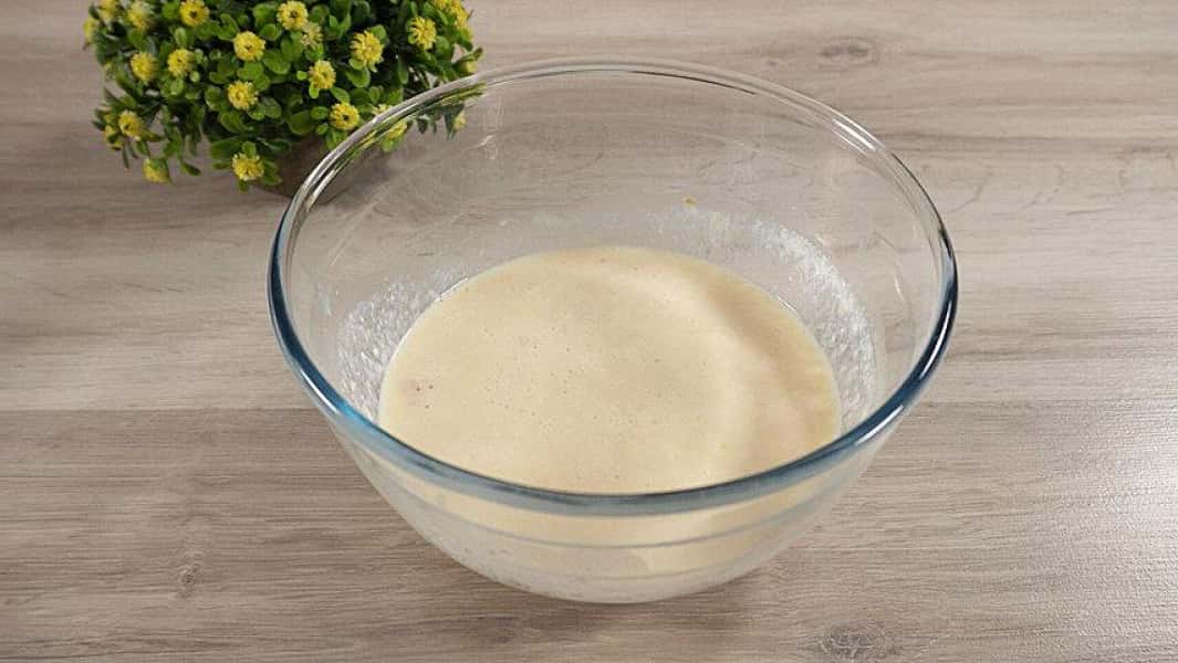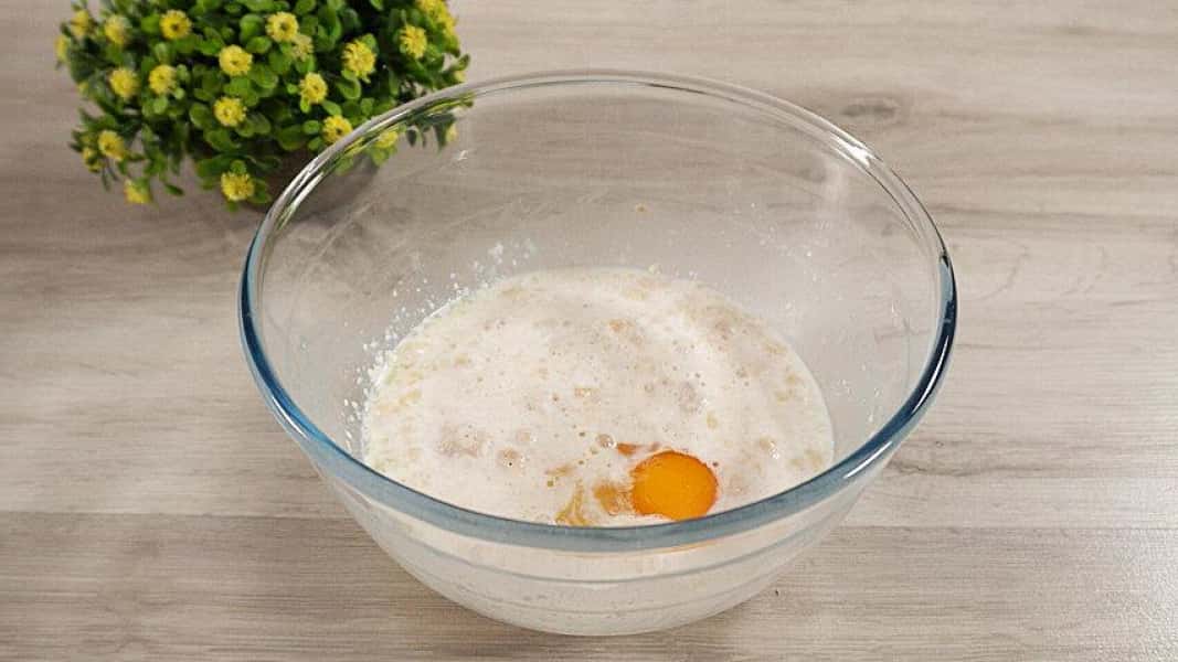 - Додаємо цукор, дріжджі і все добре перемішуємо. Ми залишаємо закваску на 5 хвилин.
