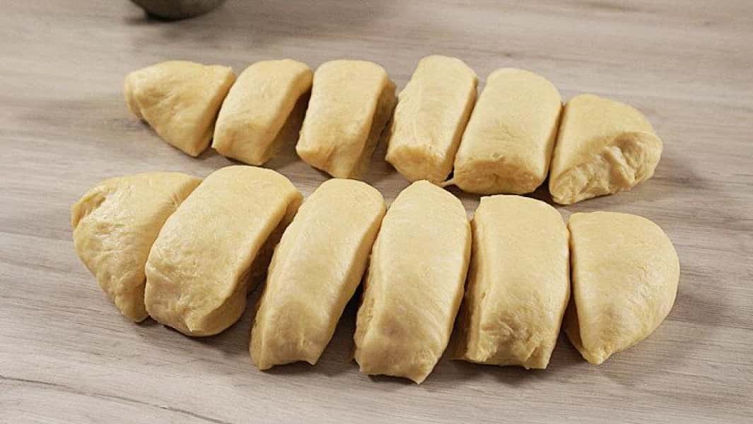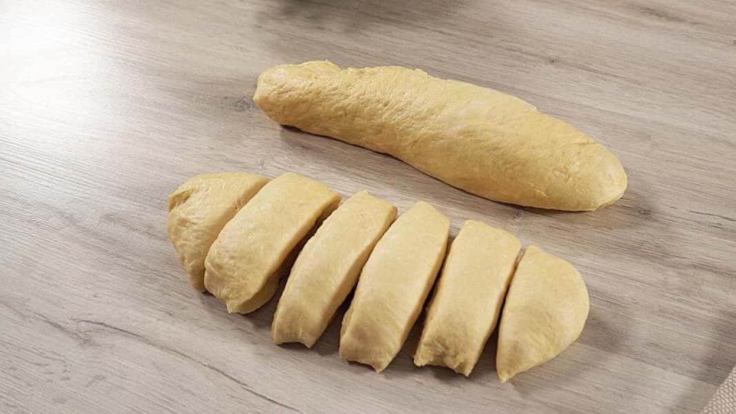 - Ділимо тісто навпіл і дві половинки ділимо на рівних 6 частин.