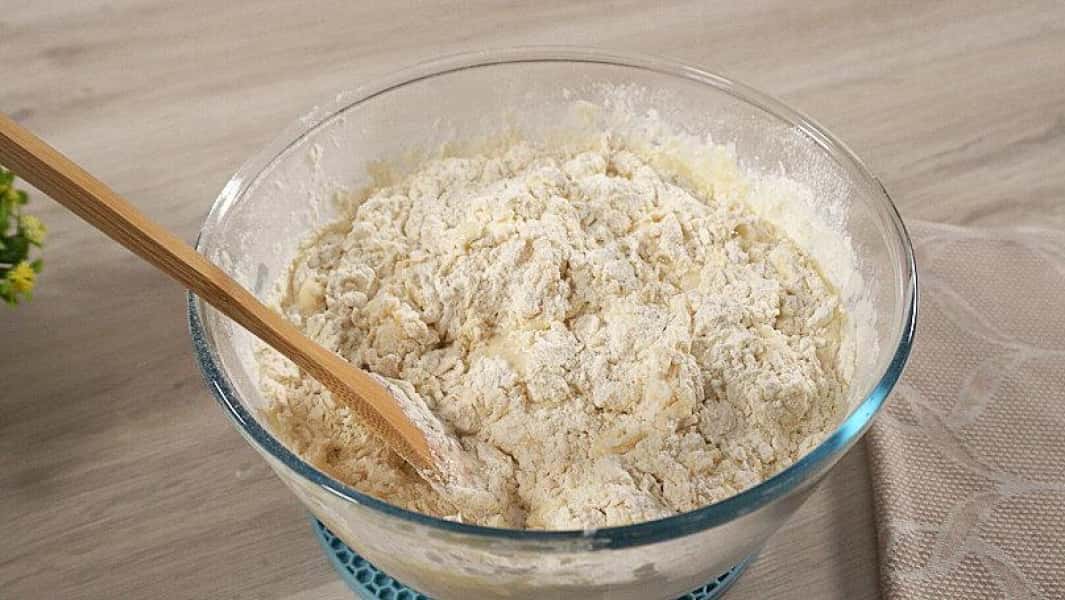 - Замішуємо лопаткою тісто до загустіння.