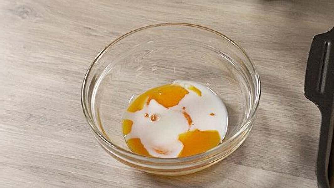 - Поділяємо 1 яйце. Відокремлюємо білок від жовтка. Жовток залишаємо для змащування тіста.