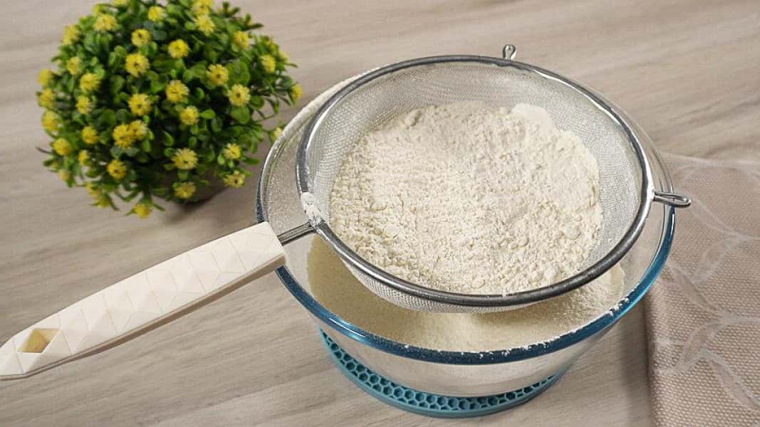 - Через сито просіюємо борошно.