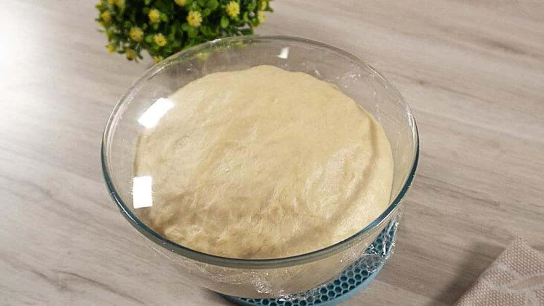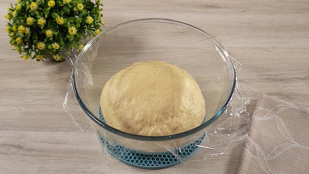 - Потім замішуємо тісто руками. Після кладемо в миску і накриваємо харчовою плівкою і рушником.