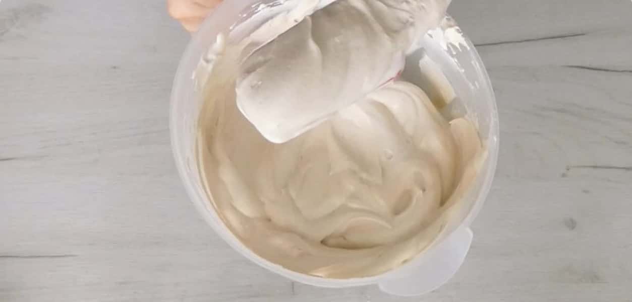 13. У решту додати розчинену кави і перемішати міксером на невеликій швидкості.