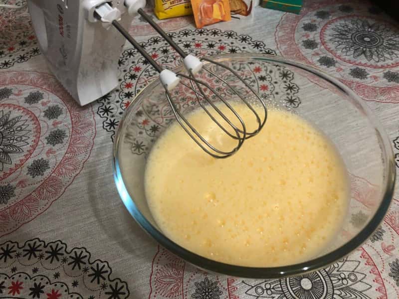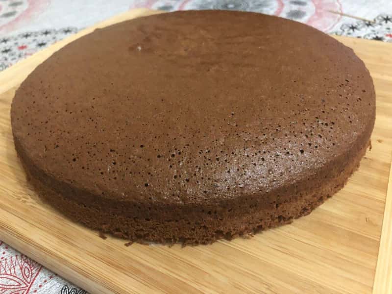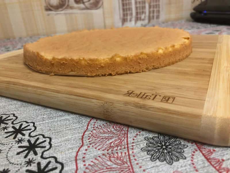Випікати 12-15 хвилин при температурі 180 градусів. Готовність коржа можна перевірити зубочисткою, встромивши в середину бісквіта. Якщо вийде сухою – корж готовий.