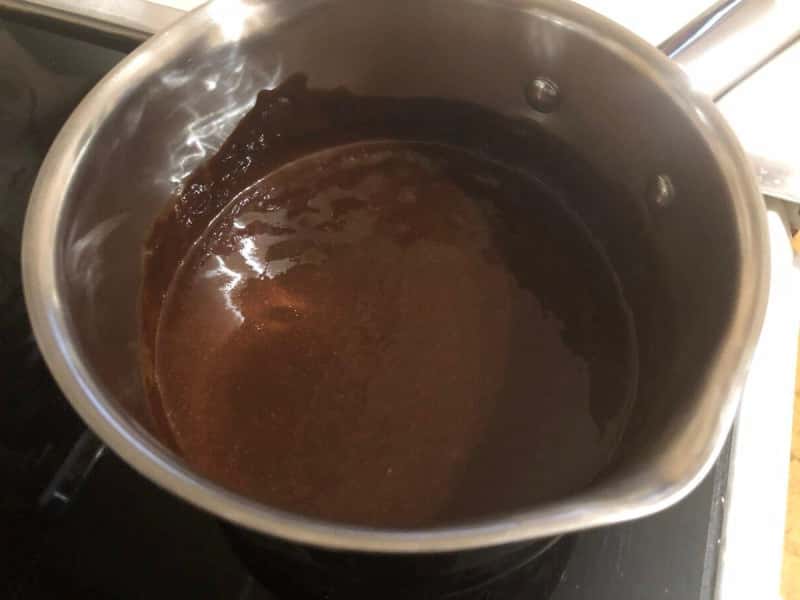 Ламаємо шоколад на шматочки і разом зі вершковим маслом кладемо в каструльку, ставимо на плиту. Помішуючи, розтоплюємо шоколад з маслом до однорідності. Глазур залишаємо охолонути.
