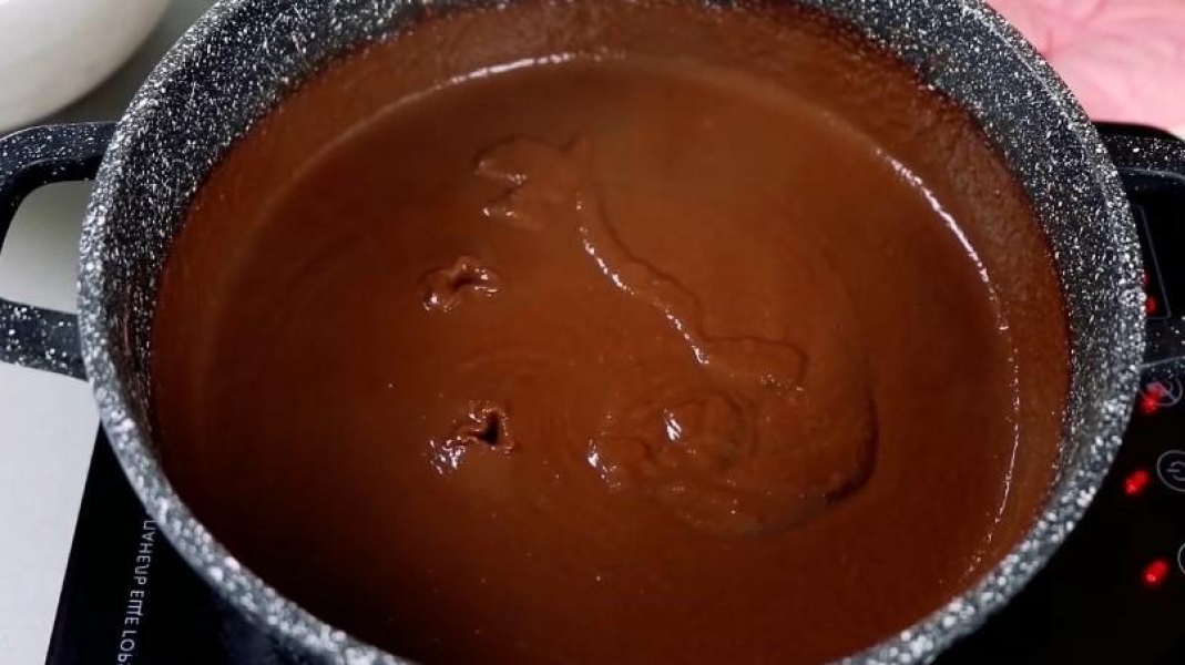 Змішайте какао, цукор та молоко до однорідної консистенції. Нагрівайте суміш на середньому вогні, постійно помішуючи. Коли крем стане гарячим, встановіть мінімальний вогонь і готуйте до загустіння (близько 2 хвилини після закипання).