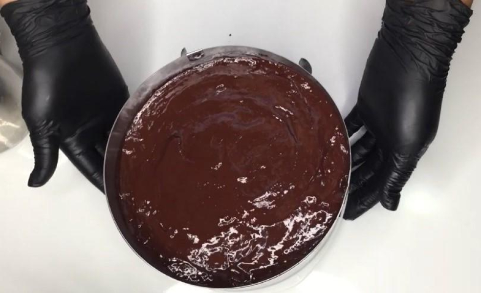Покрийте теплою глазур’ю торт. Відправте його на 4 години в холодильник.