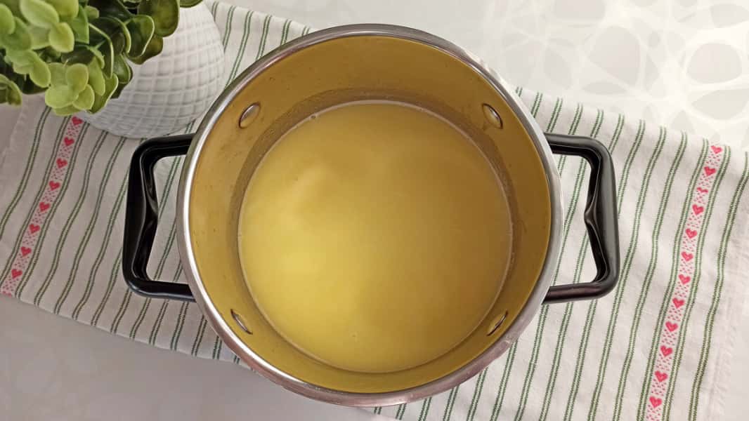 1. У каструлю з товстим дном наливаємо воду. Кладемо вершкове масло і дрібку солі. Відправляємо ці інгредієнти на середній вогонь і доводимо до кипіння.