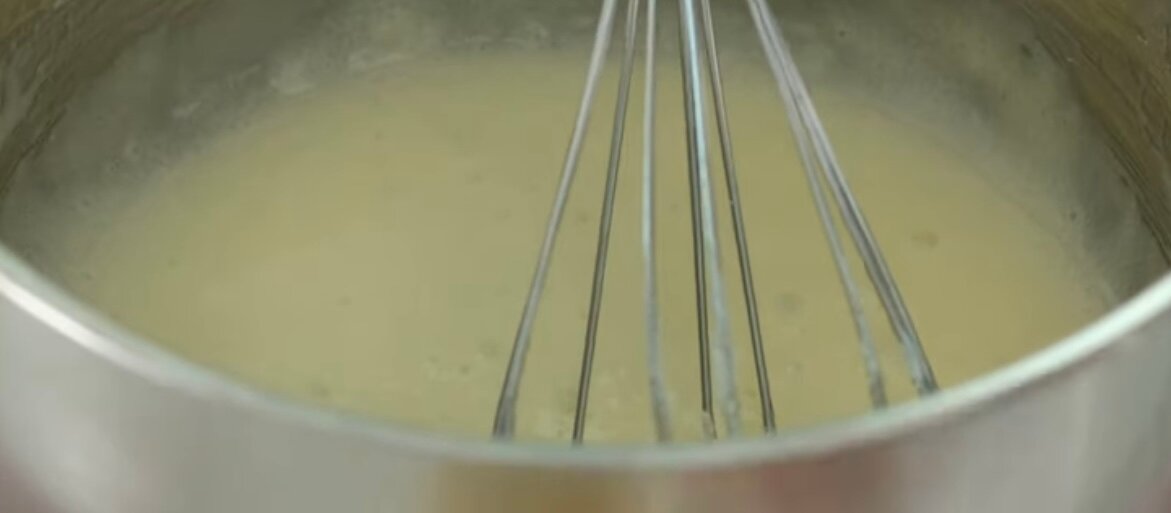 У каструлю розбиваємо яйце і збиваємо його за допомогою вінчика до однорідності. Додаємо цукор, кукурудзяного крохмалю і ретельно змішуємо.