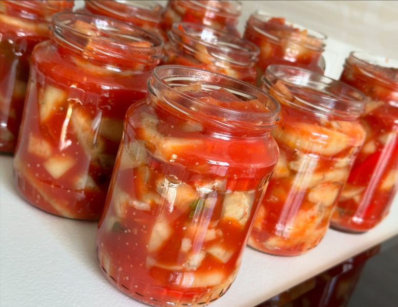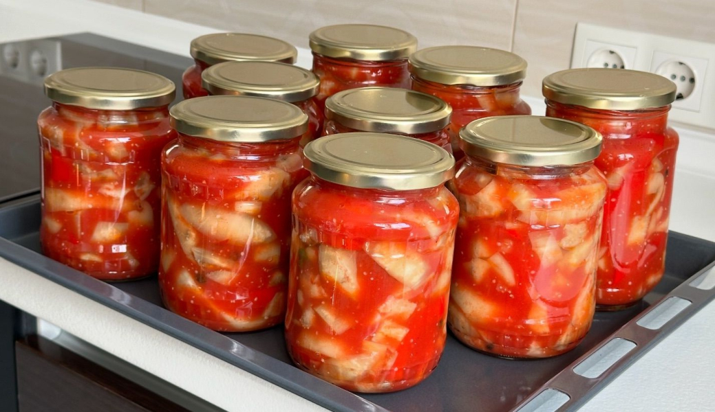 Готові баночки добре зберігаються за кімнатної температури. У кого консервація зберігається у підвалі чи прохолодній коморі, тоді стерилізувати не потрібно. Перевернути і добре укутати до повного остигання.
