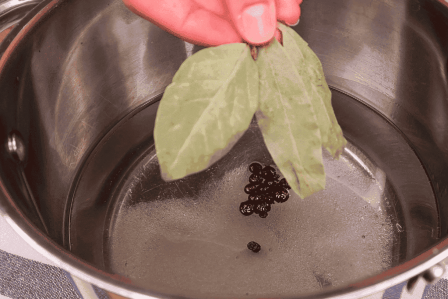 Для маринаду в гарячу воду додаю сіль, цукор, чорний перець горошком, перець запашний горошком і лавровий лист, олію. Переношу на вогонь та кип’ячу 3 хвилини.