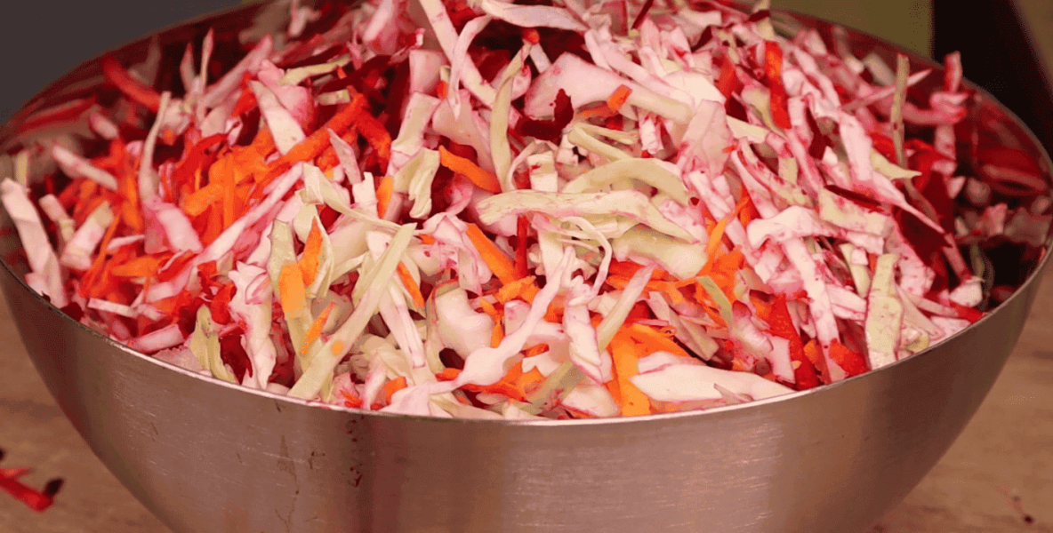 Хрустка і дуже смачна маринована капуста з бурячком і часником на зиму