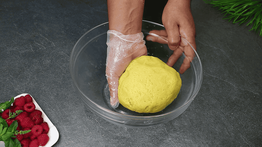 Кладу в миску холодне вершкове масло, додаю цукор і перетираю руками. Далі додаю одне яйце, борошно з розпушувачем і замішую тісто. Воно виходить м’яке і еластичне.
