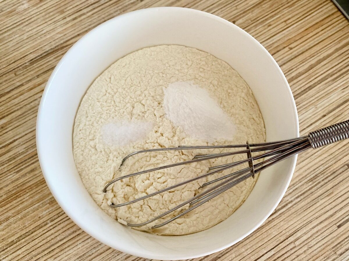 Борошно змішати з сіллю і розпушувачем ( розпушувач беріть свіжий, тому що якщо він полежав у відкритій упаковці кілька днів, то може підвести ).