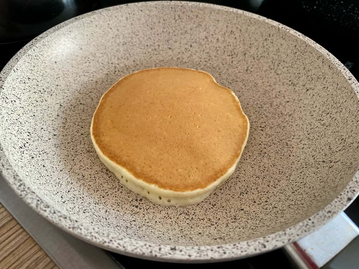 На один панкейк йде 2 ст. л. тіста ( я використовую невеликий ополоник для мультиварки ).