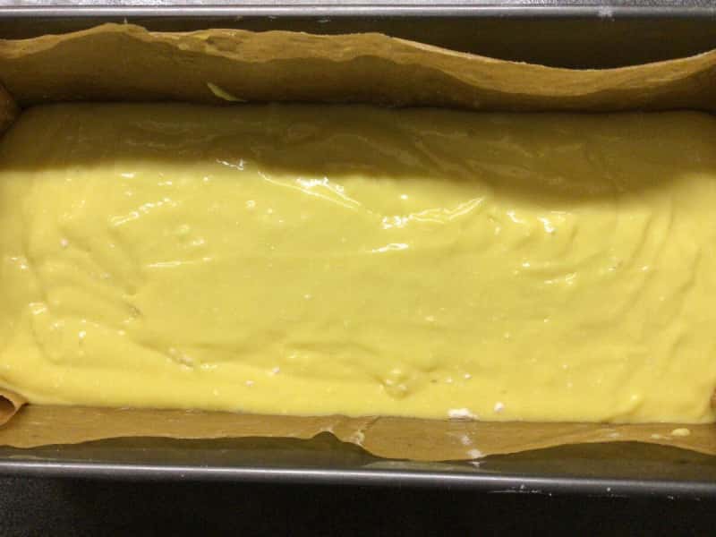 Форму для кексів застилаємо пергаментним папером і викладаємо тісто. Лопаточкою тісто вирівнюємо по всій формі.