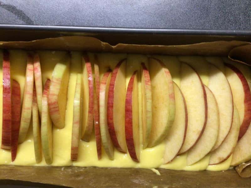 Шматочки яблука розкладаємо на заготівлю кексу.