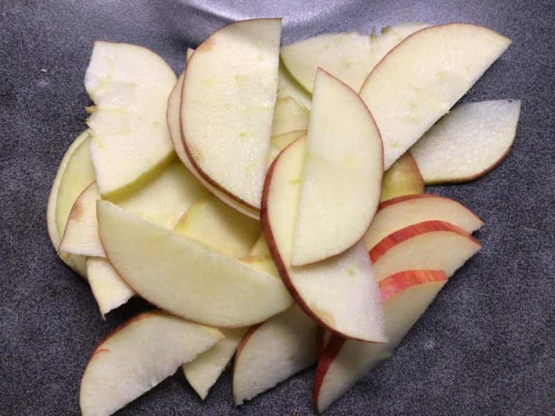 Візьмемо два яблука, вирізаємо серцевинки і нарізаємо на тонкі слайси.