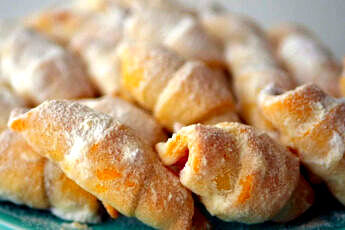 Перед самою випічкою за допомогою ситечка щедро посипати заготовки цукровою пудрою.