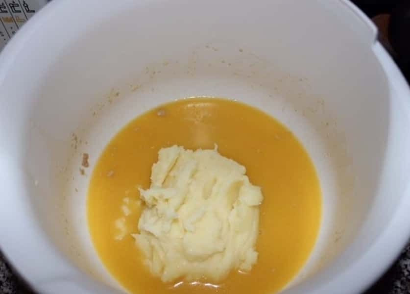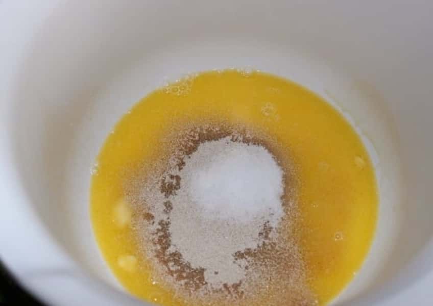 - Спочатку змішуємо молоко, воду, розтоплене вершкове масло, дріжджі, цукор, сіль, яйце.