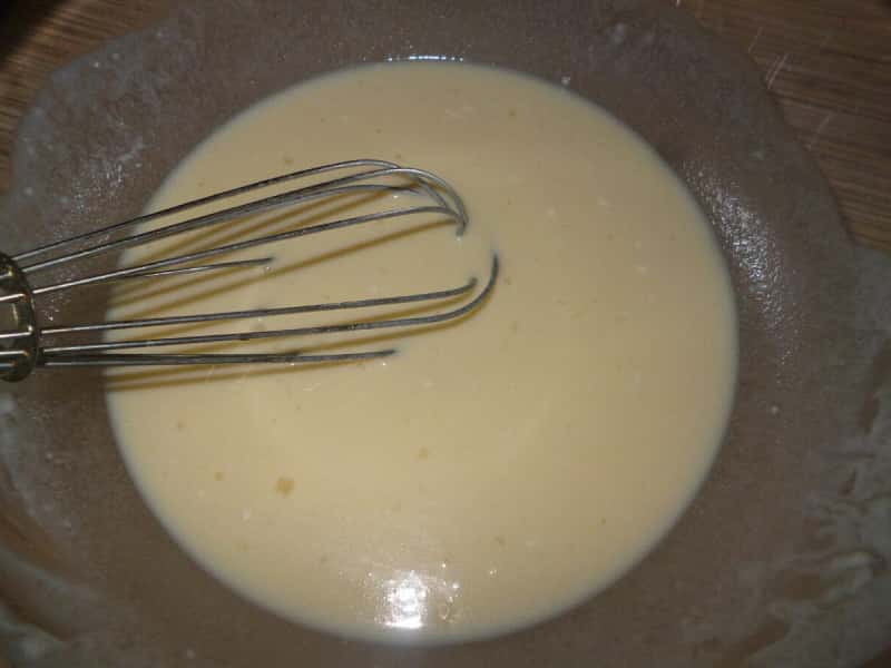 По одному вбиваємо яйця. Вбили одне, перемішали, потім вбили друге, перемішали. Змішуємо просто вінчиком або ложкою.