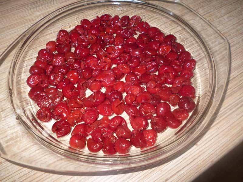 У змащену маслом форму з невисокими бортиками викладаємо вишню.