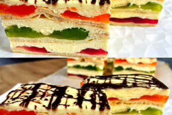 Десерт при випіканні підніметься, але потім знову осяде. Він повинен залишатися плоским. Їдять його ложечкою.