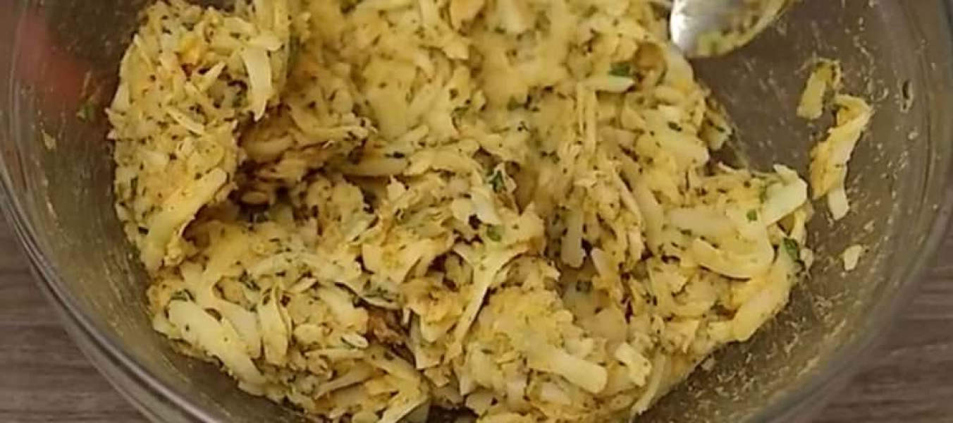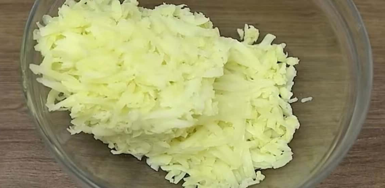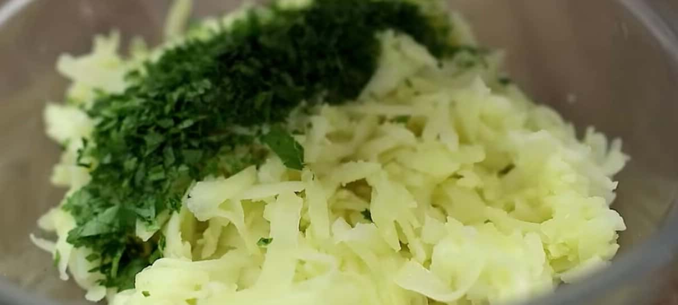 У каструлю викладаємо очищену картоплю, заливаємо водою і варимо до готовності. Відварену картоплю натираємо на великій терці і перекладаємо в глибоку чашу.