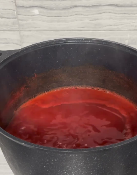 З помідорів робимо сік. Ставимо його на вогонь,